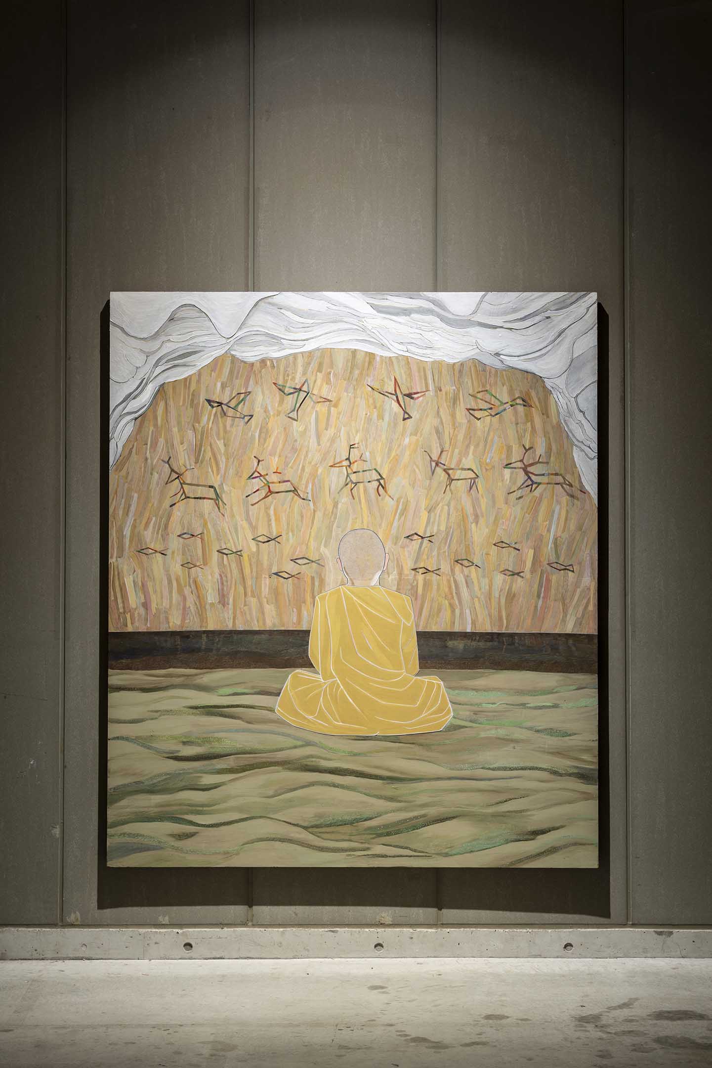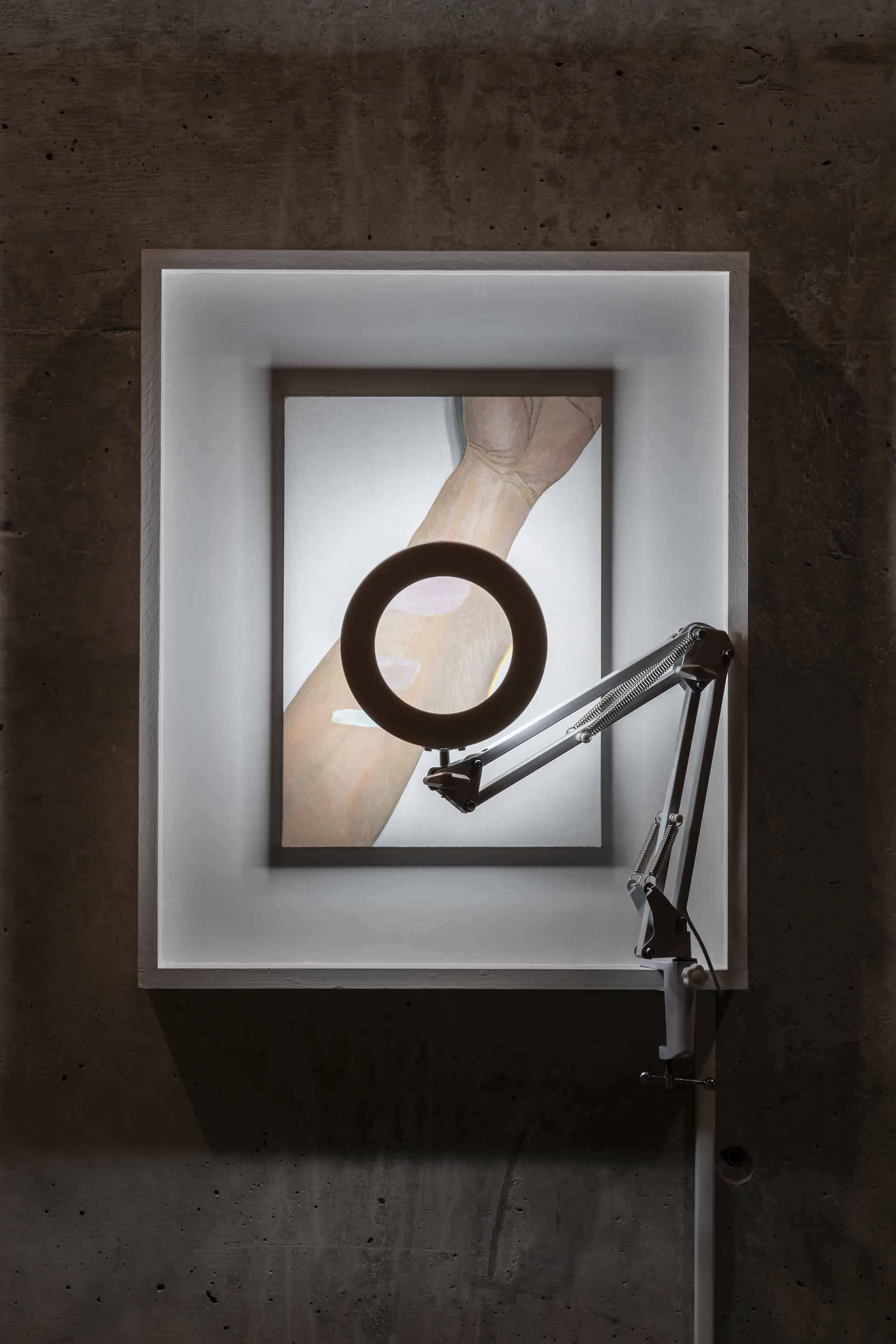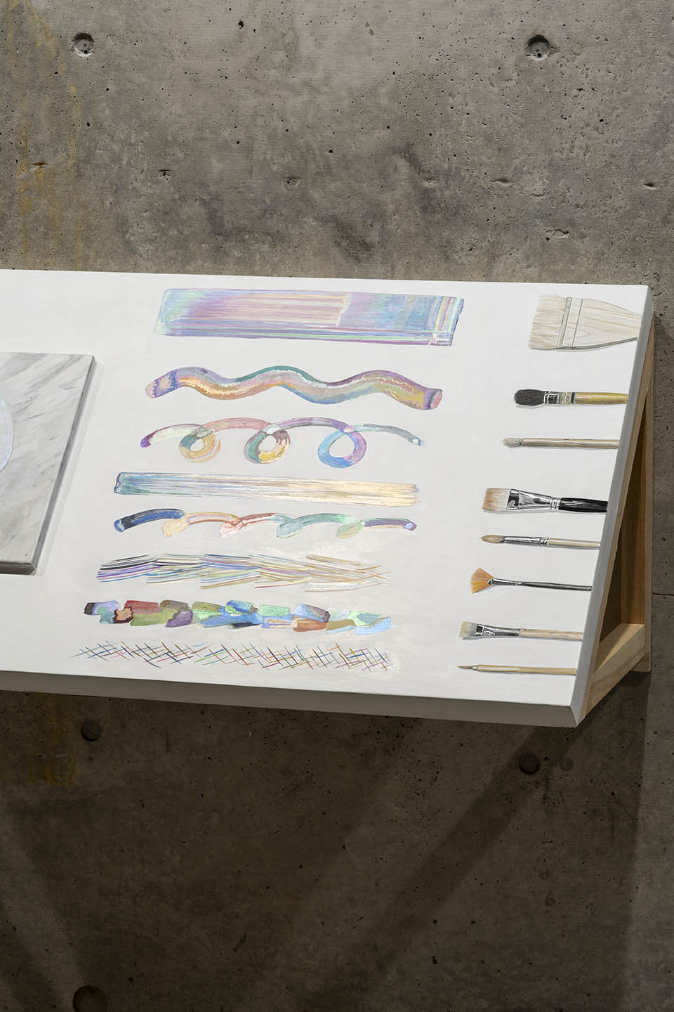 Pigment, egg yolk, rye flour, drying oil, acrylic resin, Jesmonite AC100, animal glue, gypsum, linen and wood panel
