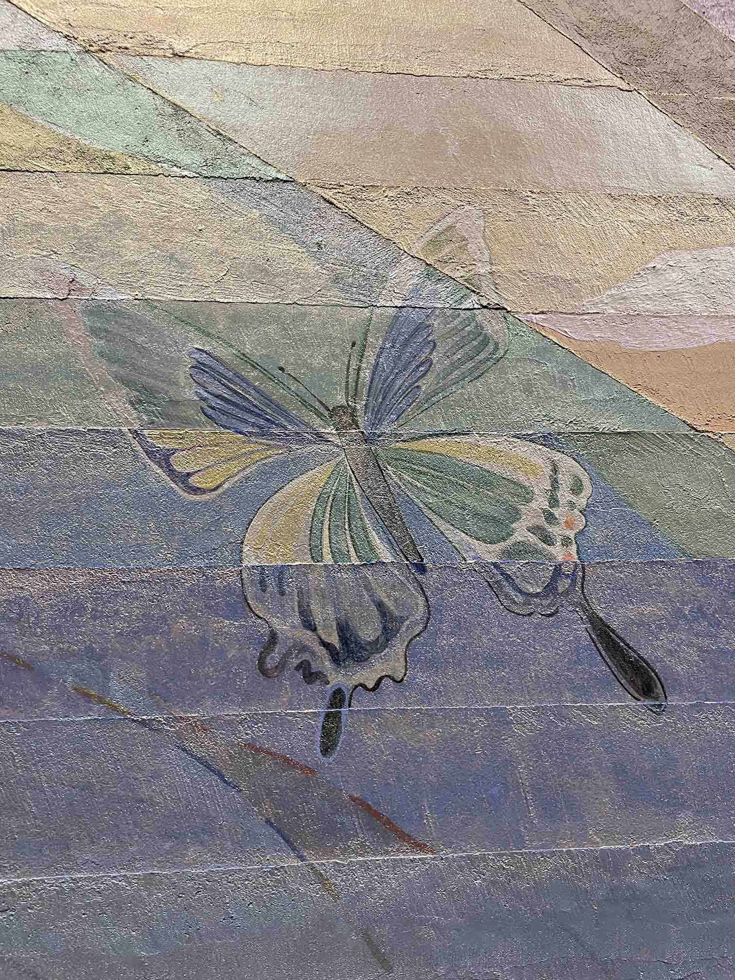 Pigment, rye flour, drying oil, iron sulfate(Ⅱ) on plywood