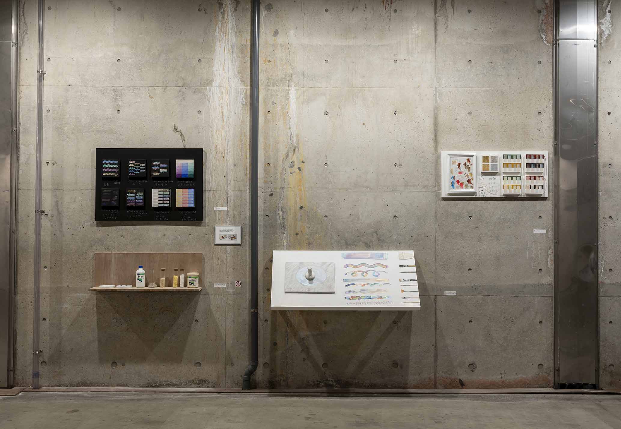 顔料、漆喰、樹脂プラスター、ジェスモナイトAC100、和紙、加賀城さんの布